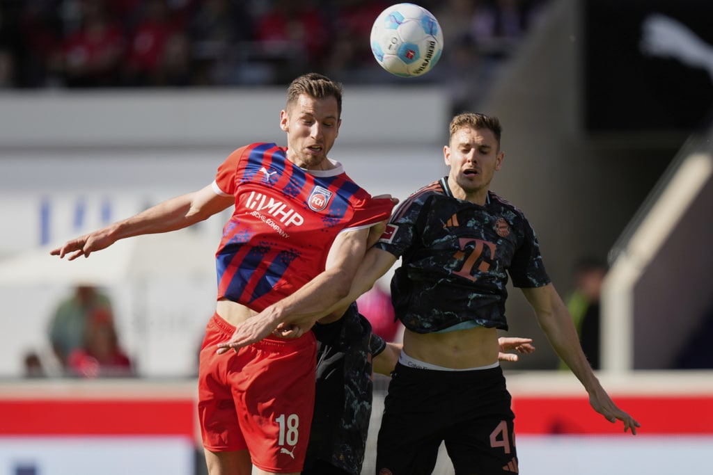 Heidenheim’s Frans Kratzig, left, and Bayern’s Konrad Laimer fight for the ball ring the German Bundesliga soccer match between Heidenheim and Bayern Munich in Heidenheim, Germany, Saturday, April 19, 2025. (AP Photo/Matthias Schrader)Heidenheim’s Marvin Pieringer, left, and =ba4= jump for the ball during the German Bundesliga soccer match between Heidenheim and Bayern Munich in Heidenheim, Germany, Saturday, April 19, 2025. (AP Photo/Matthias Schrader)Heidenheim’s Marvin Pieringer, left, and Bayern’s Eric Dier jump for the ball during the German Bundesliga soccer match between Heidenheim and Bayern Munich in Heidenheim, Germany, Saturday, April 19, 2025. (AP Photo/Matthias Schrader)Bayern’s Kingsley Coman, left, and Heidenheim’s Patrick Mainka fight for the ball during the German Bundesliga soccer match between Heidenheim and Bayern Munich in Heidenheim, Germany, Saturday, April 19, 2025. (AP Photo/Matthias Schrader)Heidenheim’s Benedikt Gimber, front = and Bayern’s Harry Kane fight for the ball during the German Bundesliga soccer match between Heidenheim and Bayern Munich in Heidenheim, Germany, Saturday, April 19, 2025. (AP Photo/Matthias Schrader)Bayern’s Harry Kane reacts during the German Bundesliga soccer match between Heidenheim and Bayern Munich in Heidenheim, Germany, Saturday, April 19, 2025. (AP Photo/Matthias Schrader)
