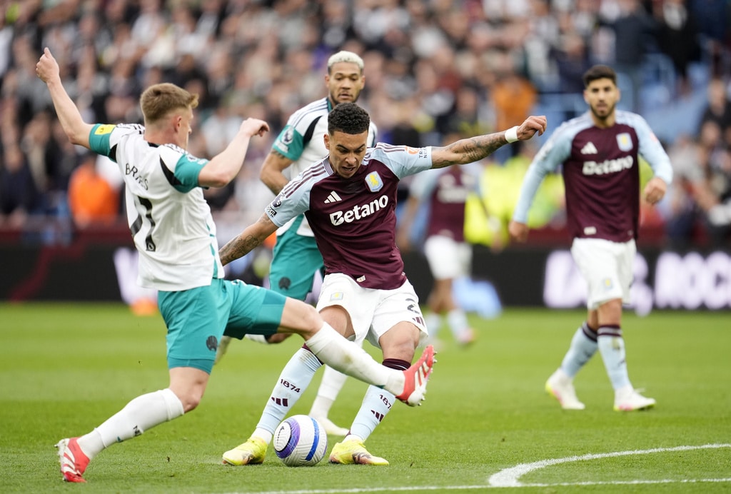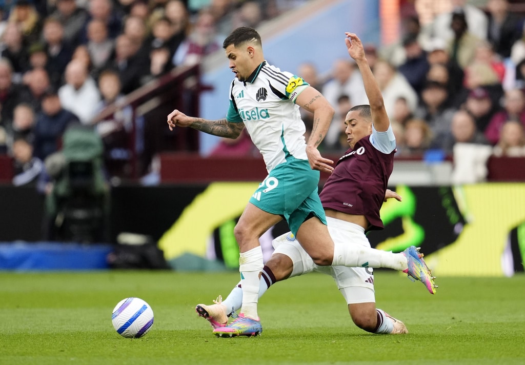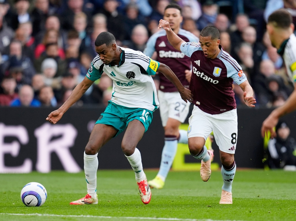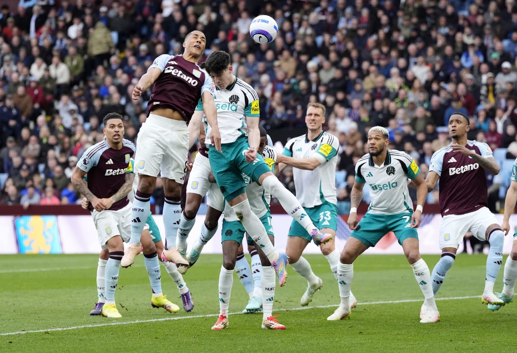 Aston Villa’s Morgan Rogers, center, and Newcastle United’s Harvey Barnes in action during the English Premier League soccer match between Aston Villa and Newcastle United at Villa Park, Birmingham, England, Saturday April 19, 2025. (Nick Potts/PA via AP)Newcastle United’s Bruno Guimaraes, left, and Aston Villa’s Youri Tielemans battle for the ball during the English Premier League soccer match between Aston Villa and Newcastle United at Villa Park, Birmingham, England, Saturday April 19, 2025. (Nick Potts/PA via AP)Aston Villa’s Youri Tielemans, second left, heads towards goal during the English Premier League soccer match between Aston Villa and Newcastle United at Villa Park, Birmingham, England, Saturday April 19, 2025. (Nick Potts/PA via AP)Newcastle United’s Bruno Guimaraes, left, and Aston Villa’s Ezri Konsa battle for the ball in action during the English Premier League soccer match between Aston Villa and Newcastle United at Villa Park, Birmingham, England, Saturday April 19, 2025. (Nick Potts/PA via AP)Newcastle United’s Alexander Isak, left, and Aston Villa’s Youri Tielemans battle for the ball during the English Premier League soccer match between Aston Villa and Newcastle United at Villa Park, Birmingham, England, Saturday April 19, 2025. (Nick Potts/PA via AP)Aston Villa’s Ollie Watkins, right and Newcastle United’s Kieran Trippier vie for the ball during the English Premier League soccer match between Aston Villa and Newcastle United at Villa Park, Birmingham, England, Saturday April 19, 2025. (David Davies/PA via AP)