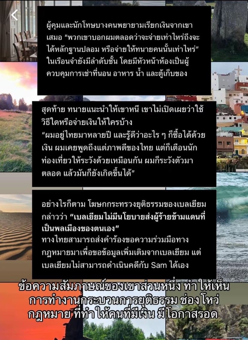 เมื่อวันที่ 18 เมษายน 2568 ได้มีผู้ใช้ติ๊กต็อกรายหนึ่งชื่อแอคเคาท์ @cherieshelby โพสต์ภาพพร้อมข้อความเพื่อหวังเรียกร้องความยุติธรรมให้กับแม่ผู้ล่วงลับของเธอ ซึ่งถูกอดีตสามีเก่าฆาตกรรมเมื่อประมาณ 20 กว่าปีก่อน โดยไม่ได้รับโทษ แถมยังหลบหนีออกจากประเทศไทยกลับไปใช้ชีวิตอย่างดีที่เบลเยียม