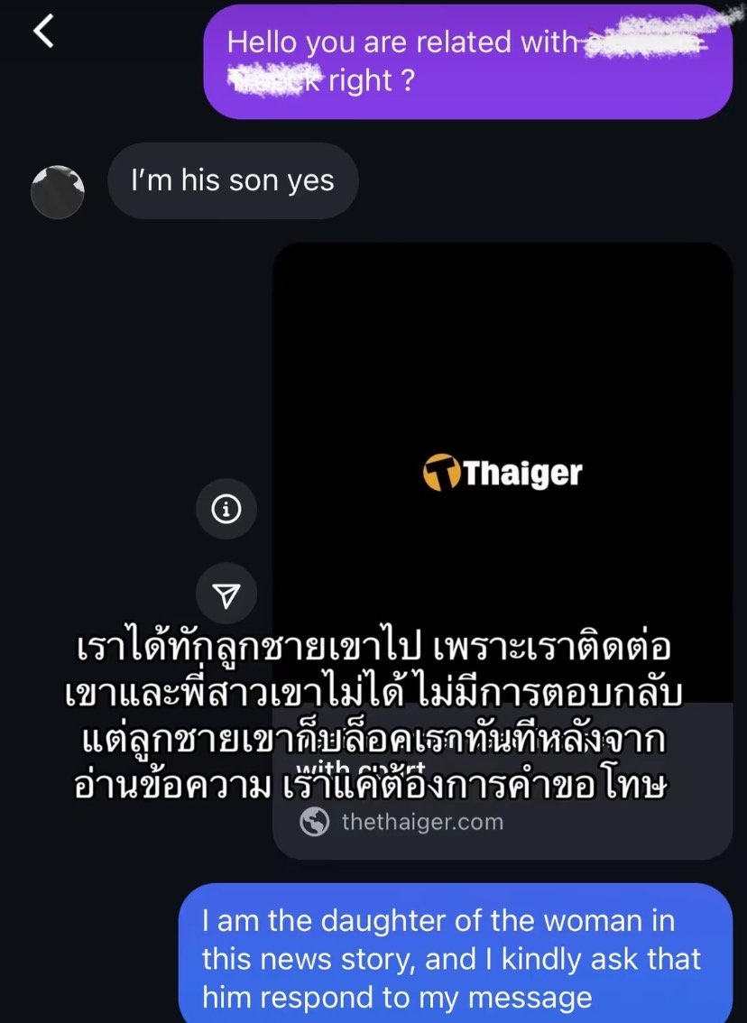 ทางเจ้าของช่องซึ่งเป็นลูกสาวของผู้เสียชีวิตได้พยายามทวงคืนความยุติธรรมให้กับครอบครัวด้วยตัวเองมาตลอด โดยทำการติดต่อไปยังลูกชายของอดีตสามีแม่ผู้ที่ลงมือฆ่า แต่กลับถูกบล็อคการติดต่อทั้งหมด และไม่มีแม้กะทั้งคำขอโทษ แถมยังใช้ชีวิตกินหรู อยู่สบาย เที่ยวรอบโลกแบบสุขสันต์ ท่ามกลางความเจ็บช้ำและความสูญเสียของครอบครัวหญิงไทย ที่ตกเป็นเหยื่อของฆาตกรรายนี้