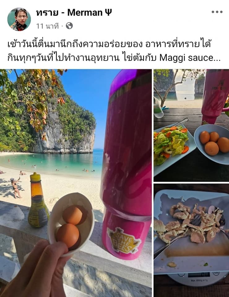 นอกจากนี้ยังโพสต์ภาพอาหารที่เจ้าตัวได้รับประทานในทุก ๆ วันก่อนออกไปปฏิบัติหน้าที่ เพื่อยืนยันความบริสุทธิ์ว่าไม่ได้เลือกกินหรือมีปัญหาเรื่องการกินตามที่เจ้าหน้าที่กรมอุทยานฯ ทำรายงานไป อีกทั้ง ทราย สก๊อต ก็ยังโพสต์ประกาศที่จะไปออกรายการสดพร้อมกับท่านอธิบดีกรมอุทยานฯ เพื่อพูดคุยและชี้แจงความจริง
