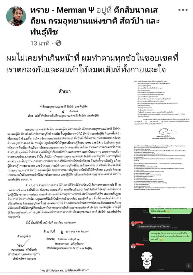 ทราย สก๊อต งัดหลักฐานโต้ ยืนยัน ไม่เคยทำเกินหน้าที่ หลังถูกเจ้าหน้าที่อุทยานแจ้ง 6 พฤติกรรม ประกาศตัวพร้อมชี้แจงในรายการสดกับท่านอธิบดีฯ