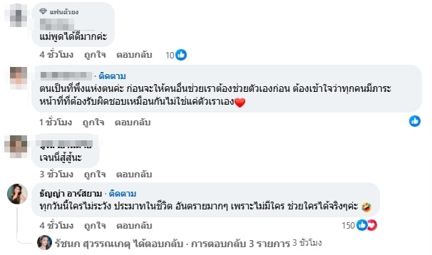 หลังจากโพสต์ไปได้ไม่นานหลาย ๆ คนก็เข้ามาแสดงความคิดเห็นโดยเป็นการให้กำลังใจลูกทุ่งสาวคุณแม่ลูกสองว่าคิดถูกแล้ว ช่วยเท่าที่เราไหวก็พอ และก็มีบางคนที่พอจะเดาออกว่าเจนนี่โพสต์ถึงใคร อย่างไรก็ดีเราคงต้องรอติดตามข้อเท็จจริงจากปากของสาวเจนนี่อีกครั้งว่าเกิดเรื่องราวอะไรขึ้น ซึ่งหากมีความคืบหน้าทางทีมงาน ไทยเกอร์ จะรายงานให้ทราบอีกครั้ง