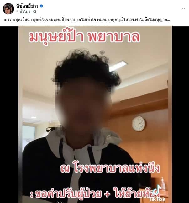 ขณะนี้ในโลกออนไลน์กำลังวิพากษ์วิจารณ์กันอย่างหนัก เมื่อเพจ อีซ้อขยี้ข่าว โพสต์คลิปหนุ่มรายหนึ่งออกมาต่อว่าพยาบาลของโรงพยาบาลแห่งหนึ่ง เพราะถูกห้ามไม่ให้สูบบุหรี่ในรพ. โดยอีซ้อระบุแคปชั่นประกอบว่า “เทพบุตรวีนฉ่ำ สุดเซ็งเจอมนุษย์ป้าพยาบาลไม่เข้าใจ ผมอยากดูดบุ..รี่ใน รพ.ทำไมถึงไม่อนุญาต…”