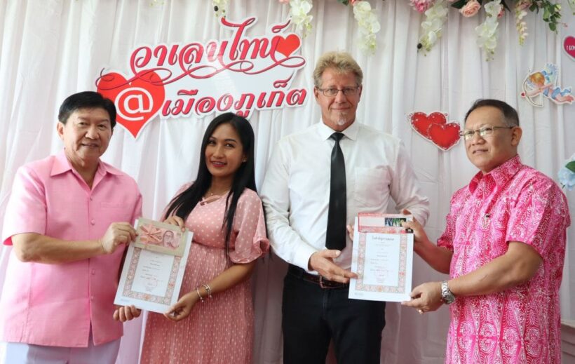 คู่รักชาวภูเก็ตจำนวนมาก แห่จดทะเบียนสมรสกัรคึกคัก เนื่องในโอกาศวันแห่งความรัก