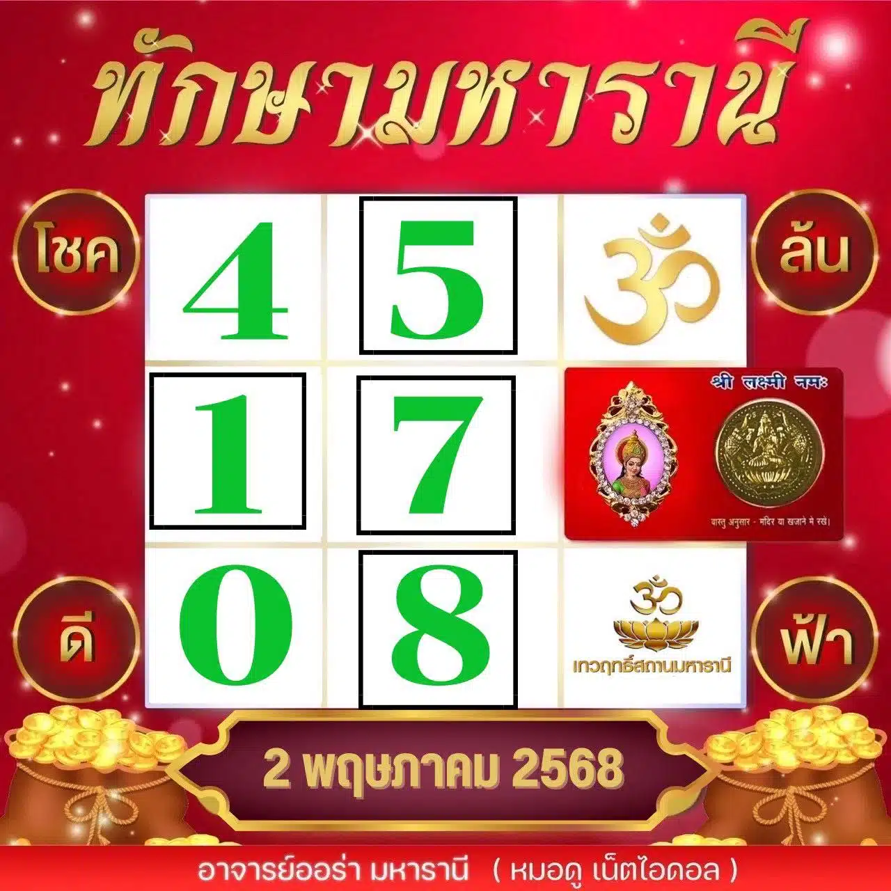เลขเด็ด อาจารย์ออร่า มหารานี งวด 2/5/68
