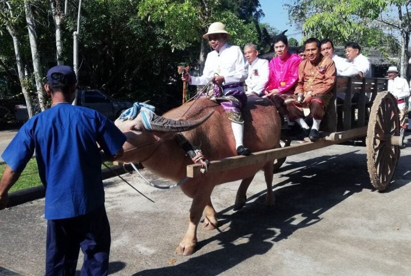 โดยขบวนแห่คู่บ่าวสาว ทางนายชัยวุฒิ บัวทอง นายอำเภออ่าวลึก ได้ขึ้นนั่งบนหลังควายเผือก พร้อมด้วยนายวีระศักดิ์ ศรีสัจจัง หน.อช.ธารโบกขรณี และข้าราชการ นั่งร่วมนำขบวน แห่คู่บ่าวนายเดินเท้าจากปากทางเข้าอุทยานฯ มายังบริเวณพิธี สร้างความฮือฮาให้ผู้มาร่วมงาน สำหรับ “เจ้าเผือก” เป็นควายเผือก แสนรู้ ของผู้ประกอบการท่องเที่ยวเอกชนในพื้นที่ โดยเจ้าเผือก เป็นควายเผือกที่เจ้าของเคยไปไถ่ชีวิตมาจากตลาดซื้อขายโคเมื่อกลายปีก่อน