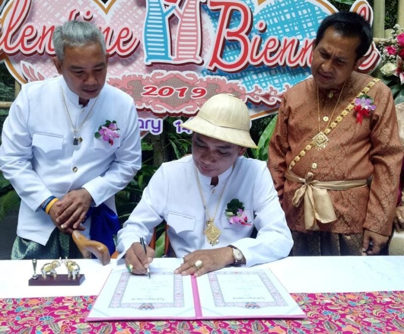 “เจ้าเผือก” นำขบวน 10 คู่รัก จดทะเบียนสมรสย้อนยุคที่ธารโบกขรณี ในวันแห่งความรัก