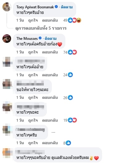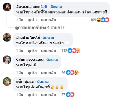 ทางด้านเพื่อนสนิทมิตรสหายและแฟนคลับที่ได้ทราบข่าวอาการป่วยของ ก้อง ห้วยไร่ ต่างก็เข้ามาแสดงความเป็นห่วงกันยกใหญ่ พร้อมอวยพรให้ลูกทุ่งชื่อดังหายไว ๆ เพื่อกลับมาสร้างความสุขและเสียงหัวเราะให้กับแฟนเพลงเร็ว ๆ นี้