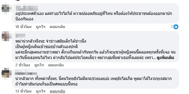การที่ลินโดนข่มขู่ โดนตามขนาดนี้ ต้องรอให้เหตุมันเกิดก่อนจริง ๆ หรอค่ะ ลินต้องรู้สึกกลัว ไม่ปลอดภัย ทั้ง ๆ ที่อยู่ในประเทศตัวเอง แบบนี้ จริง ๆ หรอ ???? ลินส่งข้อความขอความช่วยเหลือจากสื่อไหน ๆ ทุกสื่อเงียบหมด เจ้าหน้าที่เงียบหมด ไร้การให้ความช่วยเหลือใดใดทั้งสิ้น หรือต้องให้มันถึงแก่ชีวิตของลินและคนในครอบครัวก่อนจริง ๆ เหรอคะ ถึงจะสามารถเอาผิดกับชายพม่าคนนี้ได้ ..?