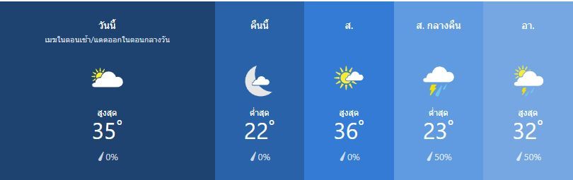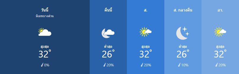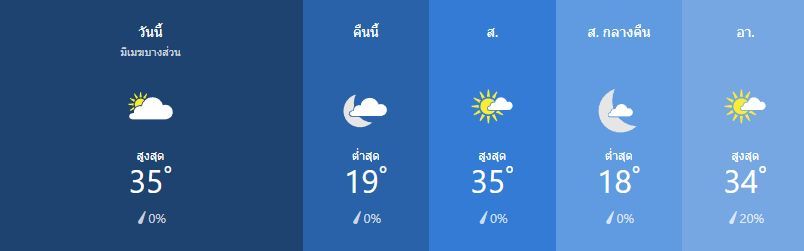มีเมฆมากเป็นบางส่วน สูง 35เซลเซียส ความเร็วลม ใต้ ตะวันออกเฉียงใต้ และมีความแปรปรวน