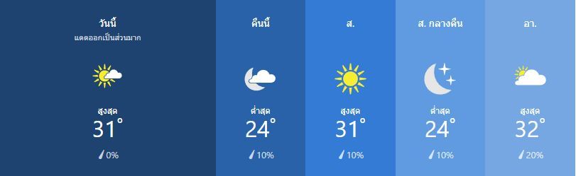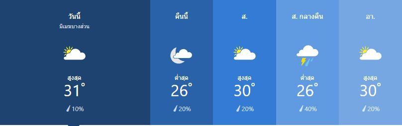 มีเมฆมากเป็นบางส่วน สูง 31เซลเซียส ความเร็วลม ใต้ ที่ 15 ถึง 25 กิโลเมตรต่อชั่วโมง
