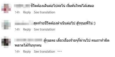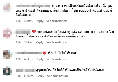 ขณะที่แฟนคลับบางต่างก็เข้ามาคอมเมนต์ส่งกำลังใจให้กับ โตโน่ ภาคิน อย่างไม่ขาดสาย ทั้งยังเชื่อว่าทุกคนเคยทำผิดพลาดกันได้ เรื่องอดีตก็ปล่อยไปไม่ต้องมาพูดถึงอีกแล้ว แต่นำความผิดพลาดที่เกิดขึ้นในอดีตมาเป็นบทเรียนเพื่อเติบโตและเดินต่อไป อย่างไรก็จะตอยซัพพอร์ตผลงานของโตโน่และณิชาเสมอ