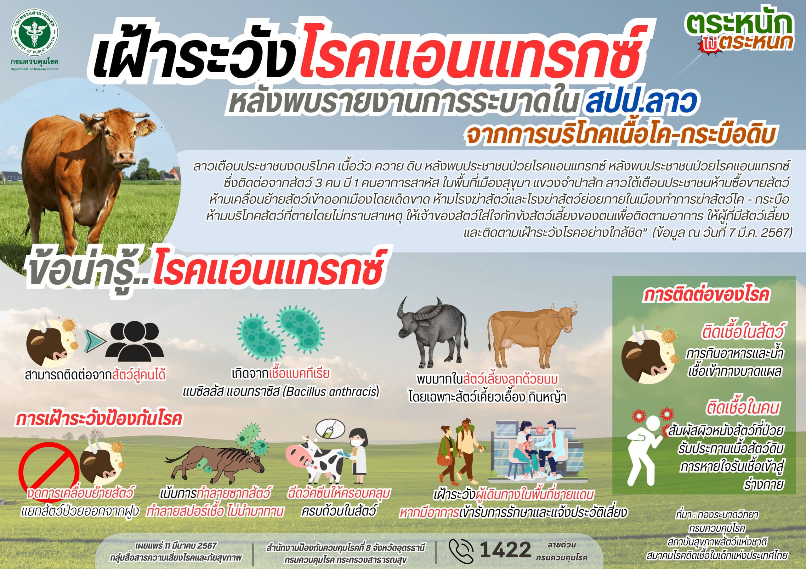 - เตือน “แอนแทรกซ์” ระบาดใกล้ไทย ติดเชื้อสัตว์สู่คน พบผู้ป่วยสะสม 4 ราย