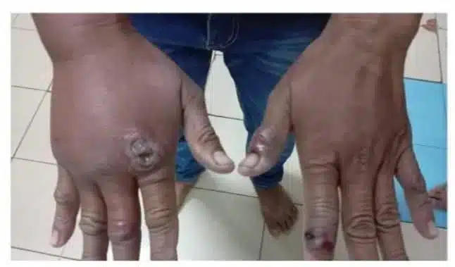 ชายคนดังกล่าวมีอาการผื่นขึ้น แผลพุพองที่มือ ซึ่งเป็นอาการที่สอดคล้องกับการติดเชื้อแอนแทรกซ์ ก่อนจะเสียชีวิตในวันที่ 30 เมษายนที่ผ่านมา ทำให้เจ้าหน้าที่สาธารณสุขต้องเร่งสอบสวนโรคและเฝ้าระวังอย่างเข้มข้น