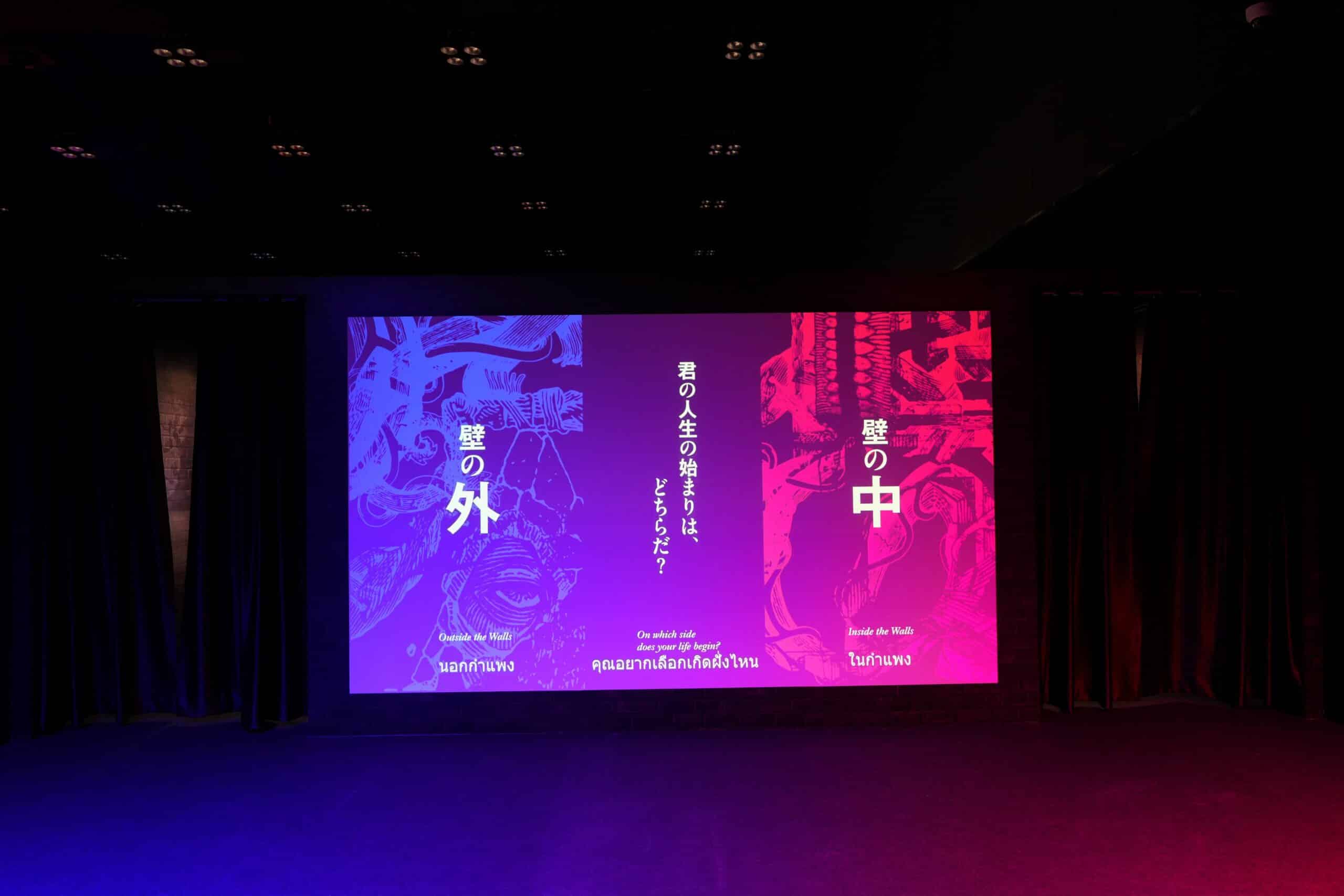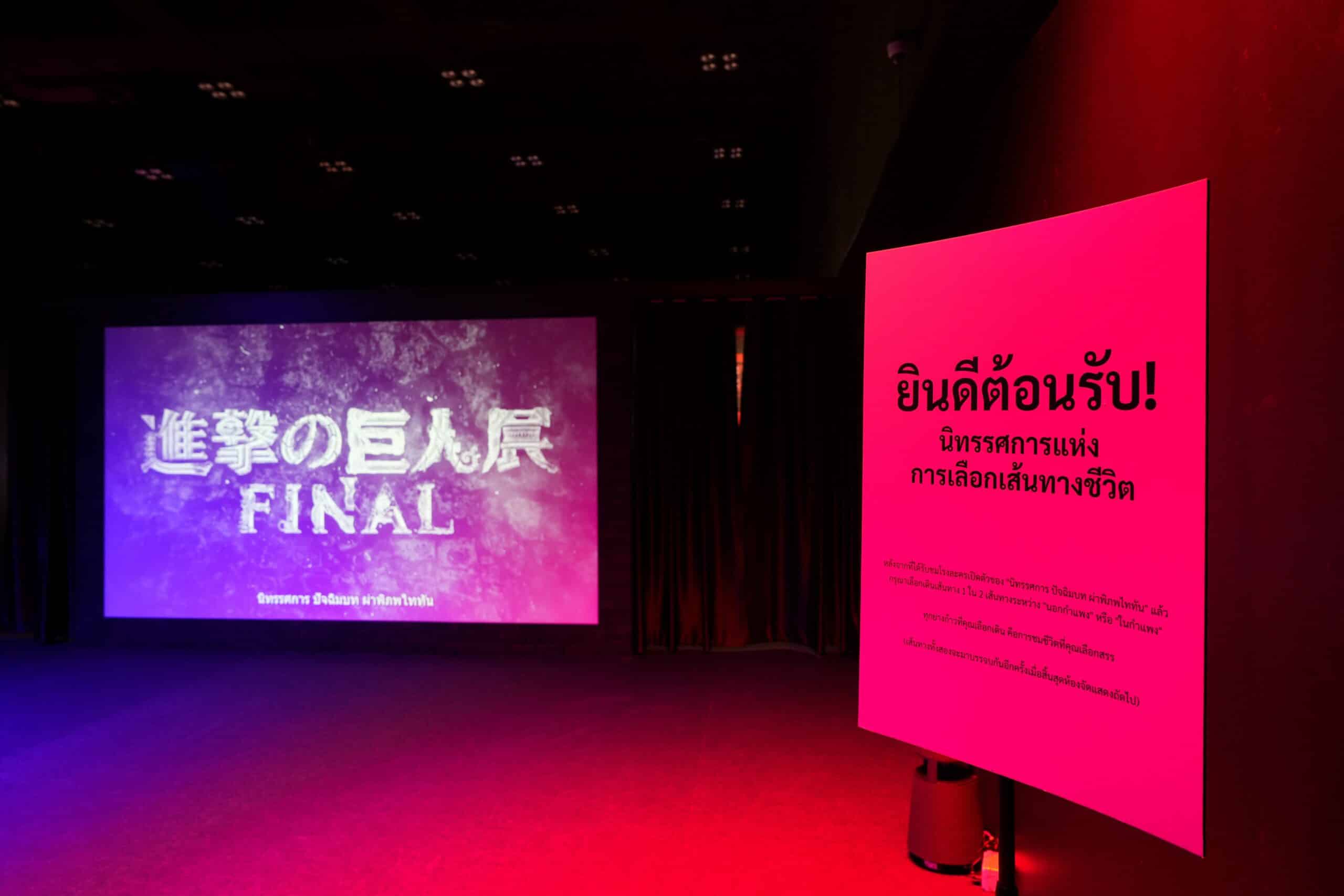 - ทางเลือกของชีวิต : เปิดฉากแรกที่โรงละคร ก้าวเข้าสู่แสงไฟสลัว เพื่อพบกับจุดเริ่มต้นของการเดินทางอันยิ่งใหญ่ ร่วมรำลึกถึงเรื่องราวของ ‘ผ่าพิภพไททัน’ ไปด้วยกัน ผ่านการตัดสินใจเลือกเส้นทางชีวิต ระหว่าง ‘ในกำแพง’ หรือ ‘นอกกำแพง’
