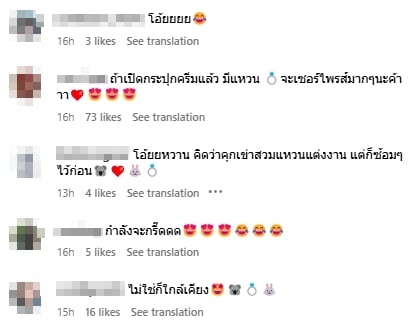 ทว่าสิ่งที่หนุ่มนนกุล หยิบออกมาจากกระเป๋านั้นไม่ใช่ แหวนเพชร แต่เป็นคตรีมสำหรับทามือนั่นเอง งานนี้ทำเอาชาวเน็ตและแฟนคลับต่างก็เข้ามาแสดงความคิดเห็นกันยกใหญ่ คิดว่า นนกุล-แอฟ กำลังจะมีข่าวดี เพราะเตรียมพิมพ์คำว่า congrats เอาไว้แล้ว