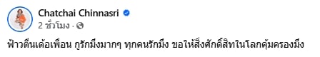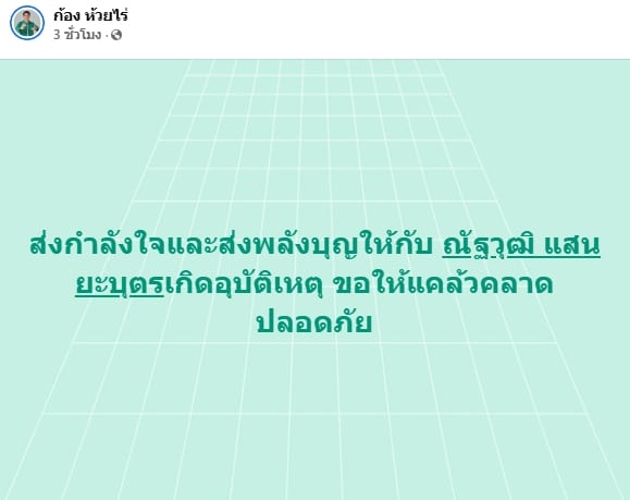ขณะที่ทางเพื่อนร่วมจักรวาลไทบ้าน อาทิ ต้องเต ธิติ, ต้าร์ ชาติชาย รวมถึงนักร้องรุ่นพี่อย่าง เบิ้ล ปทุมราช และก้อง ห้วยไร่ ต่างก็ร่วมส่งกำลังใจให้เพื่อนรักฟื้นและหายจากอาการบาดเจ็บโดยเร็ววัน