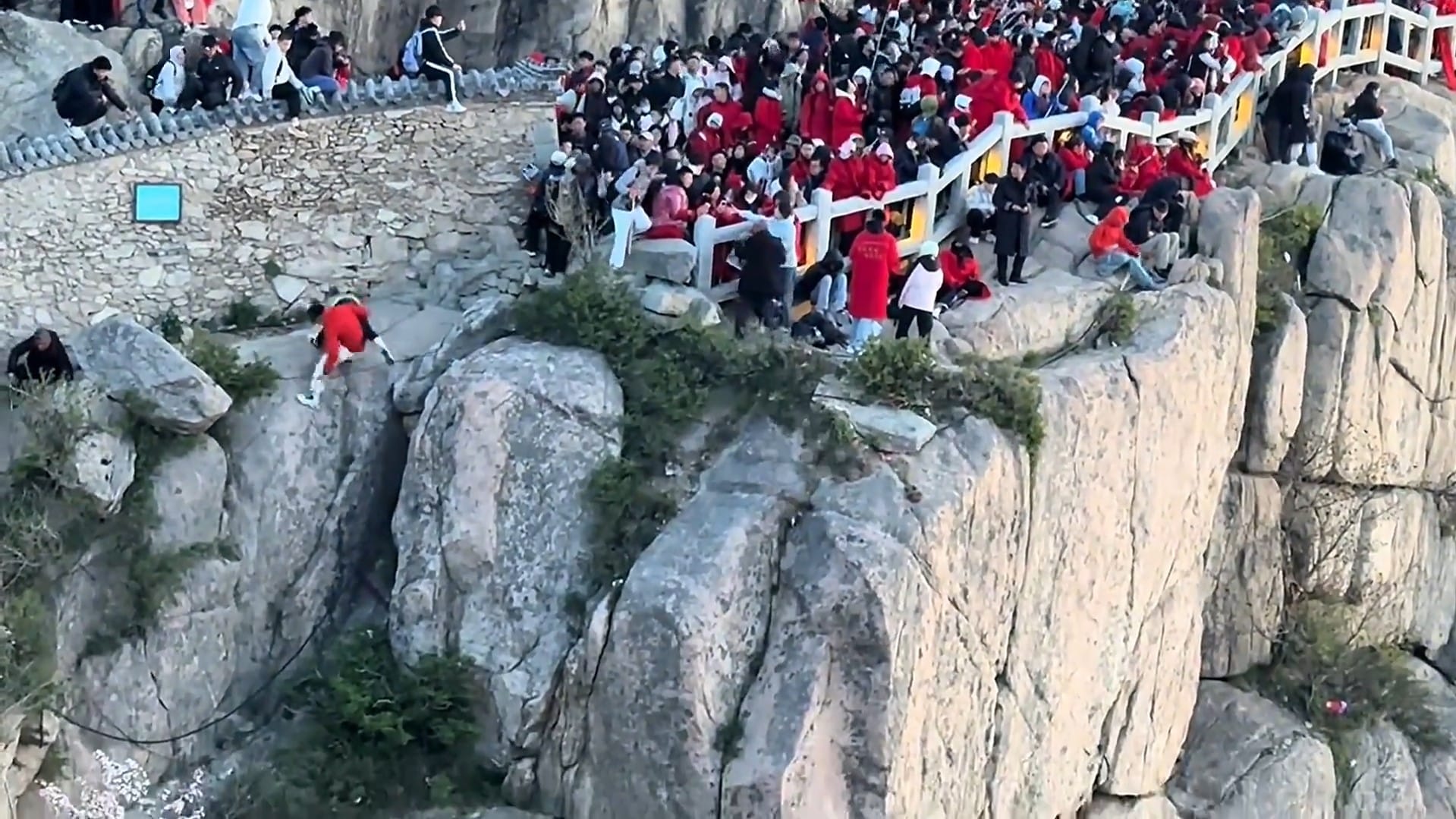 เหตุการณ์ดังกล่าวเกิดขึ้นเมื่อวันอาทิตย์ที่ผ่านมา (4 พฤษภาคม) เมื่อคู่รักชายหญิงคู่หนึ่งฝ่าฝืนกฎความปลอดภัย ด้วยการปีนข้ามรั้วเพื่อหลีกเลี่ยงฝูงชนที่กำลังต่อคิวเพื่อขึ้นไปยังภูเขาไท่ซาน แหล่งท่องเที่ยวชื่อดังของจังหวัดซานตง ในประเทศจีน แต่การแซงคิวครั้งนี้ทั้งสองคนเกือบต้องแลกมาด้วยชีวิตตัวเอง