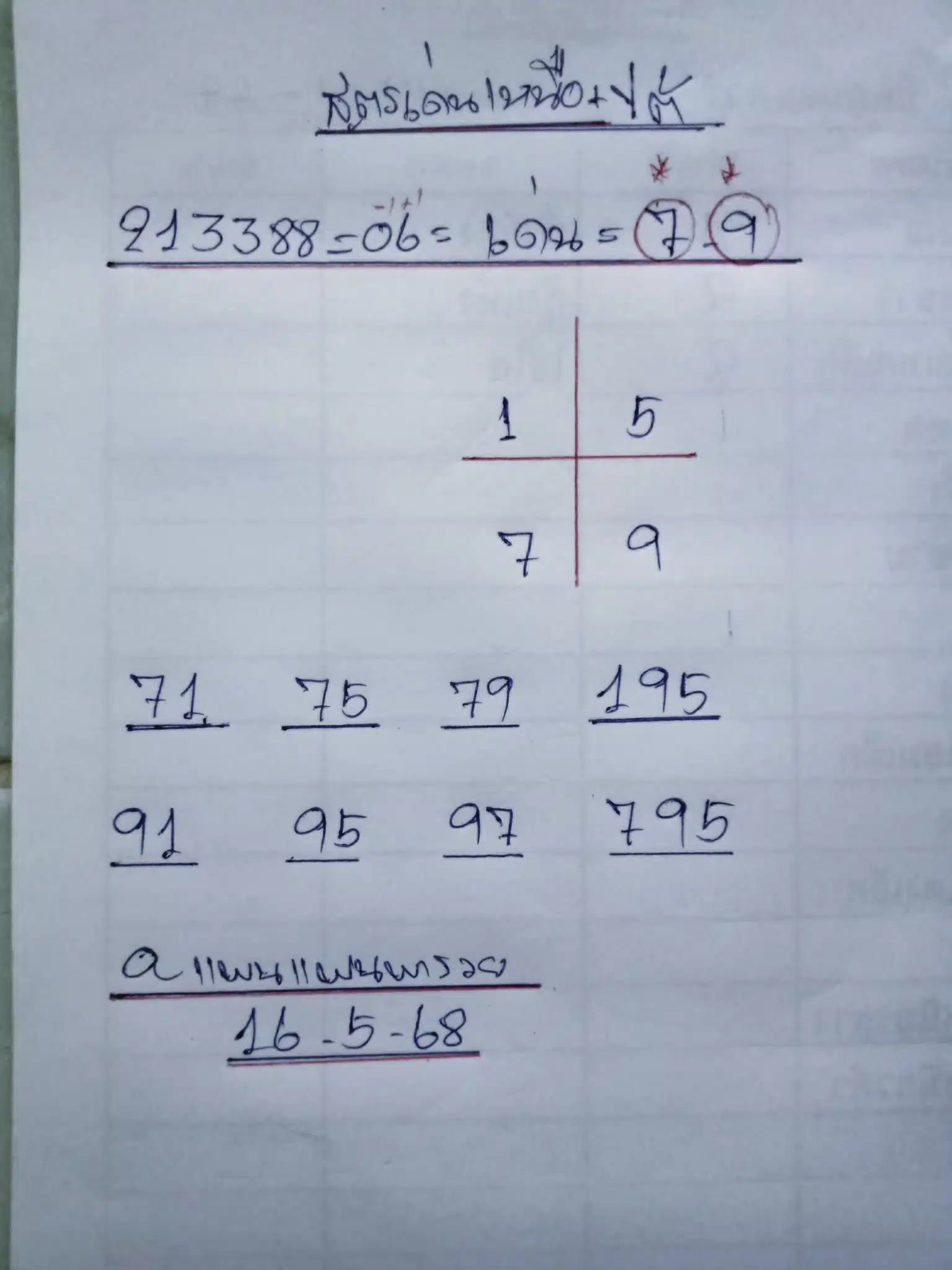- เลขตาราง : 1 – 5 – 7 – 9