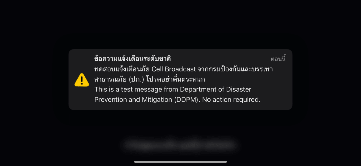 สำหรับข้อความที่ได้รับมานั้นระบุว่า “ทดสอบแจ้งเตือนภัย Cell Broadcast จากกรมป้องกันและบรรเทาสาธารณภัย โปรดอย่าตื่นตระหนก”