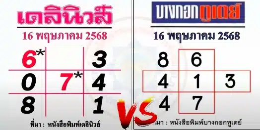เหลือ 3 วันสุดท้าย! เปิดศึกเลขตาราง “เดลินิวส์” ปะทะ “บางกอกทูเดย์” คอหวยตาลุกวาว งวดก่อนได้โชคเต็ม ๆ 16 พ.ค. 68 นี้จัดชุดใหญ่ เลขท้าย 2 ตัว 3 ตัว มีลุ้น