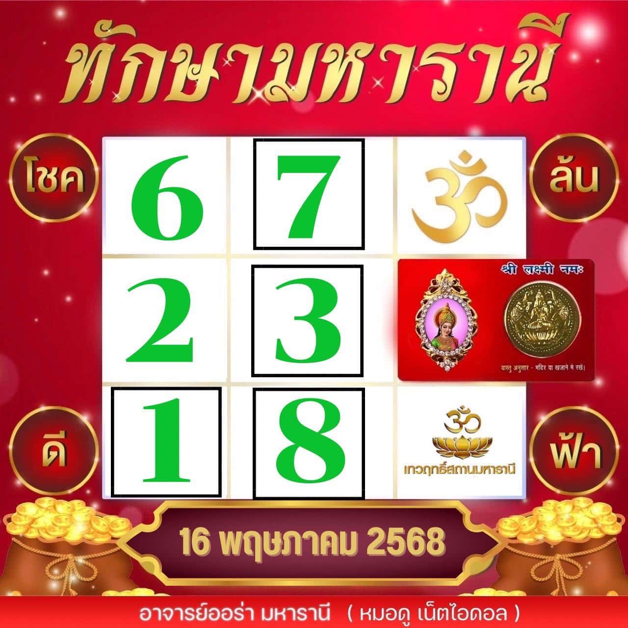 เลขเด็ด ตารางทักษามหารานี งวด 16/5/68