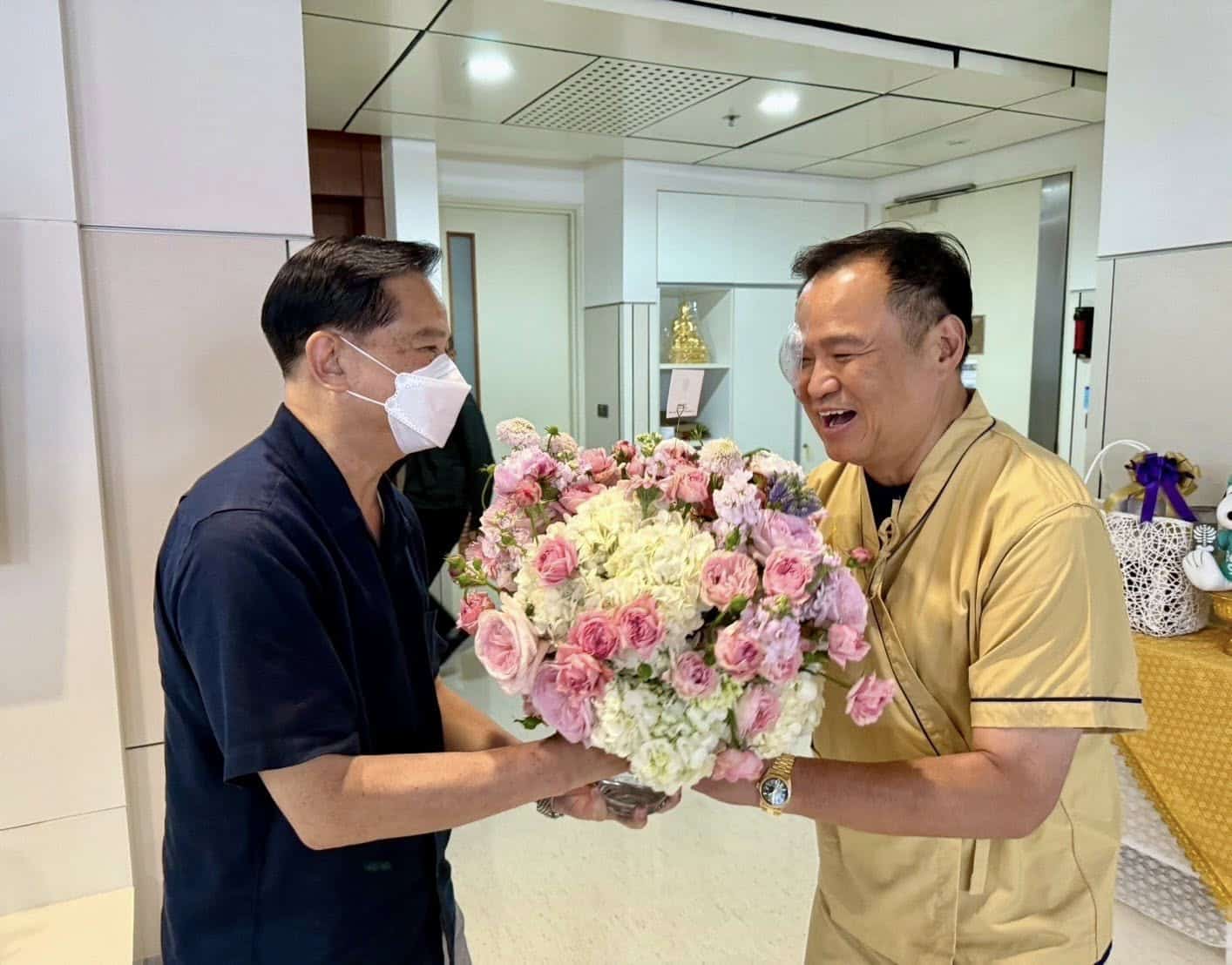 ขณะที่ย้อนกลับไปเมื่อวันที่ 12 พ.ค. นายอนุทินก็ได้โพสต์อีกว่า นายพีระพันธุ์ สาลีรัฐวิภาค รองนายกรัฐมนตรีและรัฐมนตรีว่าการกระทรวงพลังงาน เดินทางมาเยี่ยม “กราบขอบพระคุณท่านพีระพันธุ์ สาลีรัฐวิภาค รองนายกรัฐมนตรีและ รมว.พลังงาน ที่กรุณามาเยี่ยมไข้ในวันนี้ แถมยังมีเวลานั่งคุยเสวนาหารือถึงเรื่องราวต่างๆ หลายชั่วโมง จนคุณพยาบาลมาจับแยก ขอบพระคุณพี่ตุ๋ยที่มานั่งคุยเป็นเพื่อนจนหมดยกกรรมการต้องจับแยกครับ 555”