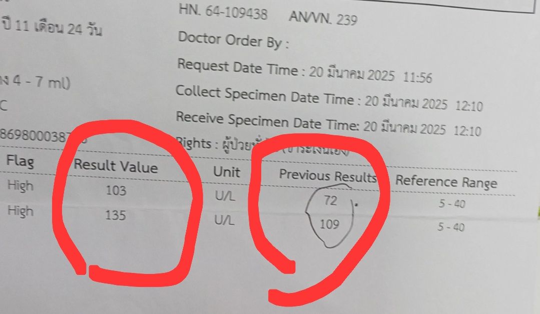 3. ณ เวลานี้ ตับผมยังคงอีกเสบ ถ้าตราบใดค่าตับไม่ปรกติ มันจะพังไปทีละน้อย นัดพบหมอต้นเดือนหน้าเพื่อรับยาครับ