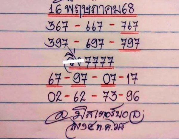 - เลขเด่น : 67 – 97 – 07 – 767 – 797