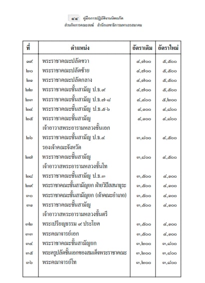- เลขานุการเจ้าคณะใหญ่หนต่างๆ (มหานิกาย/ธรรมยุต) 3,800 บาท