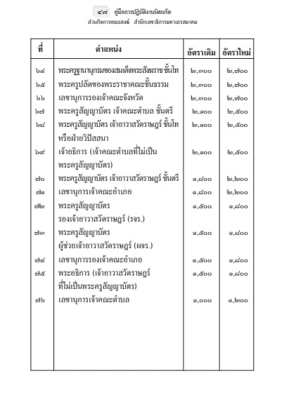 - เจ้าอธิการ (เจ้าคณะตำบลที่ไม่เป็นพระครูสัญญาบัตร) 2,500 บาท