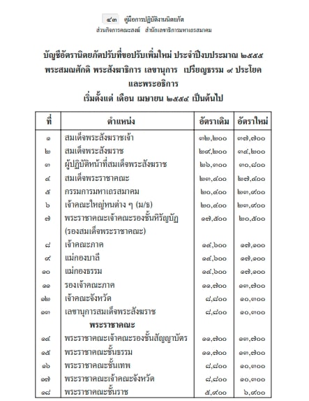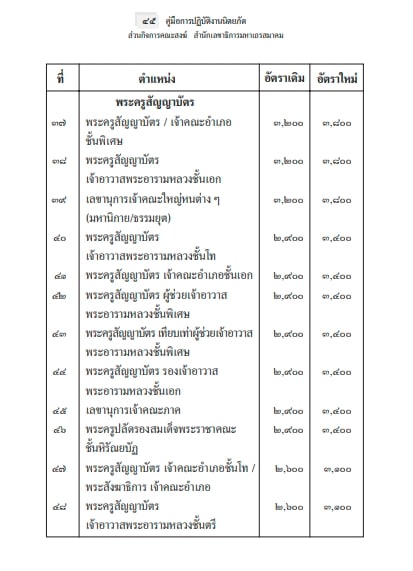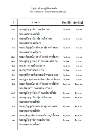 - เลขานุการเจ้าคณะใหญ่หนต่างๆ (มหานิกาย/ธรรมยุต) 3,800 บาท