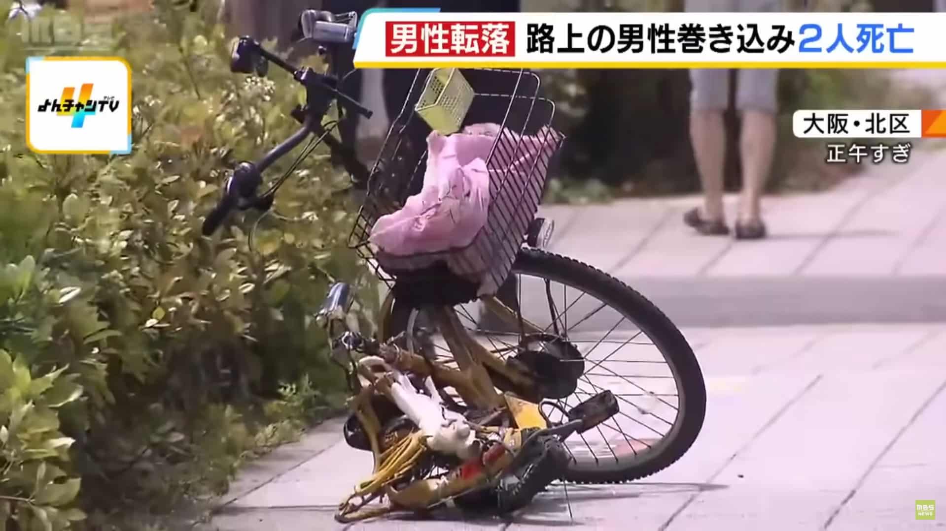 เหตุการณ์ดังกล่าวเกิดขึ้นเมื่อวันที่ 19 พฤษภาคมที่ผ่านมา เมื่อเกิดเหตุชายร่างสูงวัย 70 ปีชาวโอซาก้า พลัดตกจากคอนโดมิเนียมสูง ก่อนที่ร่างของเขาจะหล่นมาทับชายวัย 59 ปีที่กำลังปั่นจักรยานผ่านมาพอดี ทำให้สุดท้ายทั้งสองคนเสียชีวิตในที่เกิดเหตุ