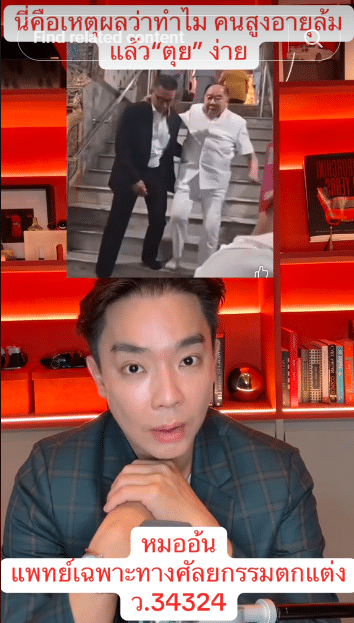 หมออ้น แนะวิธีป้องกัน “ผู้สูงอายุหกล้ม” หลังเห็นคลิป บิ๊กป้อม ลื่นตกบันไดวัดโพธิ์