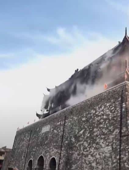 นาทีระทึก หลังคาหอคอยราชวงศ์หมิง ที่ถูกสร้างครั้งแรกเมื่อปี พ.ศ. 1918 พังถล่มลงมา นักท่องเที่ยวหนีตาย โชคดีไม่มีใครได้รับบาดเจ็บ