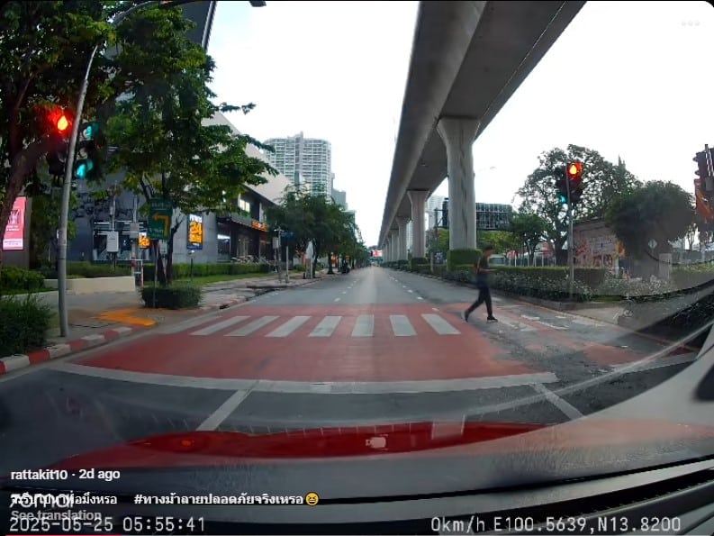 คลิปดังกล่าวได้รับการเปิดเผยจากบัญชีผู้ใช้งาน TikTok @rattakit10 ที่เป็นภาพจากกล้องหน้ารถที่บันทึกไว้เมื่อวันที่ 25 พฤษภาคมที่ผ่านมา โดยเป็นเหตุการณ์ที่รถคันนี้จอดติดไฟแดง โดยที่มีชายคนหนึ่งกำลังเดินข้ามถนนตามสัญญาณไฟ