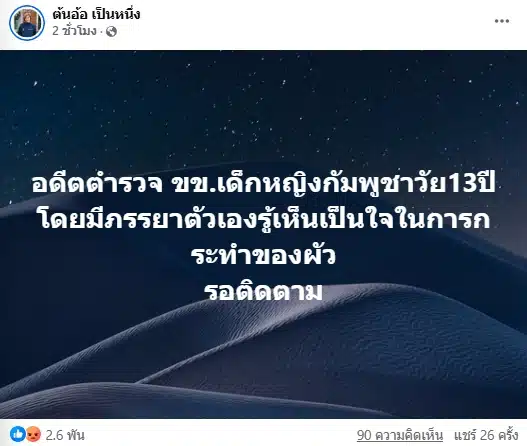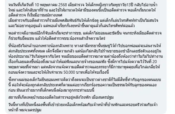 ฉาวไม่หยุด! เพจ ต้นอ้อ เป็นหนึ่ง แฉพฤติกรรมเสื่อม อดีตตำรวจ เมืองนครปฐม ข่มขืนด.ญ.13 ปีชาวกัมพูชา ช็อก! เมียรู้เห็นเป็นใจด้วย