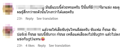 นอกจากนั้นยังมีผู้ที่เข้ามาแสดงความเห็นในเชิงสนับสนุนฝีมือของ ต๊อด ปิติ ด้วย ระบุว่า “ได้ไปเชียร์คุณต๊อดด้วยค่ะ รถคุณต๊อดเร็วจริงค่ะ เป็นกำลังใจให้ค่ะ, แล้วจะให้เฮียขับรุ่นไหนดีล่ะครับ ขับเฟอ ก็ชนะ ขับปอร์เช่ ก็ชนะ รอบนี้ขับnsx ก้ชนะ เหลือแต่เฮียลงไปขับgtm แล้วไปลงแข่งกับgt3แทน”