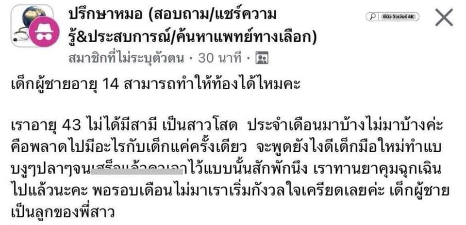 ชาวเน็ตรุมสวด น้าสาวพลาดไปซั่มกับลูกชายพี่สาววัย 14 กังวลหนักประจำเดือนไม่มา