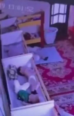 เรื่องราวอันน่าเศร้านี้ได้มีการเผยแพร่ภาพที่บันทึกได้จากกล้องวงจรปิด เผยให้เห็นว่า เหตุการณ์ดังกล่าวเกิดขึ้นเมื่อวันที่ 18 พฤษภาคม ที่ผ่านมา เวลาประมาณ 13.02 น. ขณะที่เด็ก ๆ ในระดับชั้นอนุบาลกำลังนอนพักกลางวันตามปกติ แต่มีเด็กชาย วัย 2 ขวบรายหนึ่งที่นอนอยู่บนชั้นสองของเตียง นอนดิ้นจนขาขวาของเขาลอดออกจากช่องว่างของราวกันตกเตียง เมื่อเขารู้สึกตัวตื่น จึงพยายามปีนกลับขึ้นไปบนเตียงแต่ไม่สำเร็จ ทำให้ทั้งร่างของเขาลื่นหลุดออกจากช่องว่างนั้น แต่โชคร้ายที่ศีรษะกลับเข้าไปติดอยู่กับราวกันตก และทำให้ตัวห้อยอยู่ในลักษณะนั้น