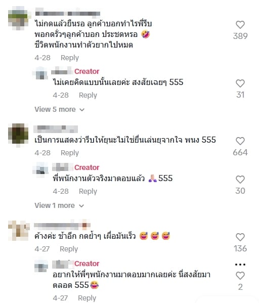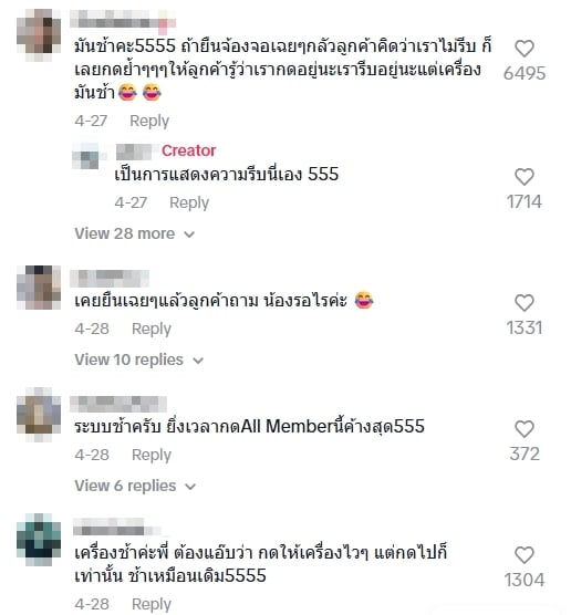 หลังจากที่คลิปดังกล่าวเผยแพร่ลงในติ๊กต็อกได้ไม่นานนัก ก็มีชาวเน็ตให้ความสนใจเข้ามาชมคลิปดังกล่าวมากถึง 700 แสนคน ทั้งยังมีตัวแทนพนักงานเซเว่นที่ทำงานอยู่จริง ๆ เข้ามาตอบคำถามให้เจ้าของช่องและคนในโซเชียลได้เข้าใจไปพร้อม ๆ กันว่า “สาเหตุที่ต้องเคาะจอซ้ำ ๆ เวลาคิดเงิน นั่นก็เพราะ เครื่องค้าง เวลายืนเฉย ๆ ลูกค้าจะไม่เข้าใจและถามว่า ทำไมถึงไม่คิดเงิน เลยเลือกที่จะกดหน้าจอรัว ๆ ให้ลูกค้ารู้ว่า รีบคิดเงินให้แล้ว แต่เครื่องมันค้าง”