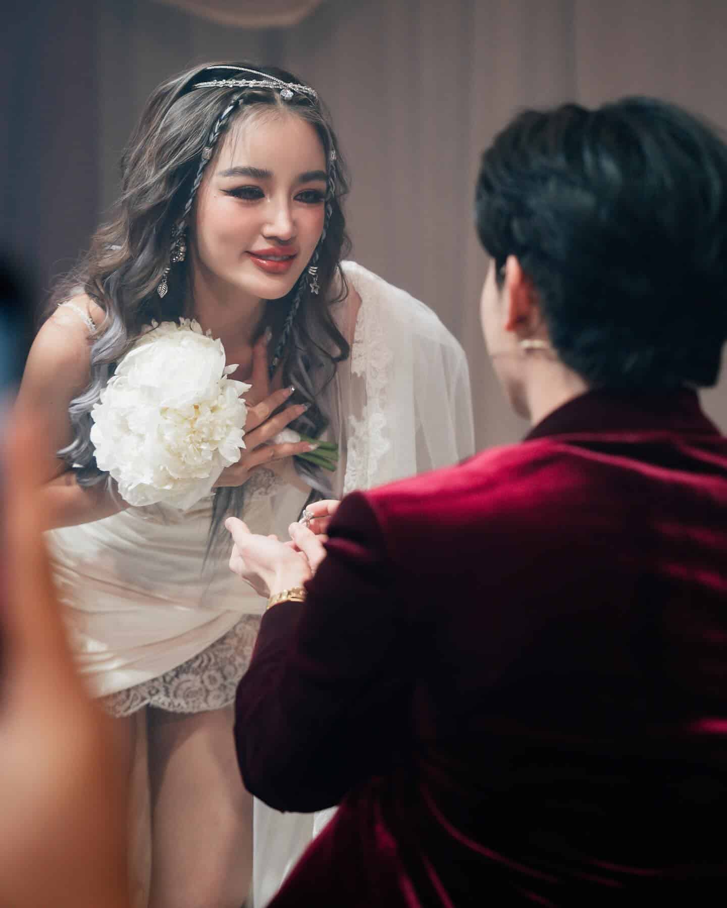 หนูอยากขอบคุณครอบครัวพี่ ๆ น้อง ๆ เพื่อน ๆ ที่ร่วมขบวนการเซอร์ไพรส์ที่น่ารักทุกคน ที่ทำให้งานเมื่อคืนนี้เป็นวันที่สวยงามและมีความสุขที่สุดในชีวิตของหนูนะคะ (ตื่นมาตาบวมไปหมด ร้องไห้หนักมากทั้งงาน) อยากจะลงรูปอีกเยอะ ๆ เลย เพลงใหม่ก็จะมา และจู่ๆก็จะเป็นเจ้าสาว ไปไม่ถูกเล้ยยยย มีอะไรจะมาอีกมั้ยค้าาาา”