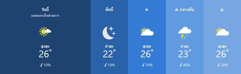 ท้องฟ้าแจ่มใสมาก สูง 26เซลเซียส ความเร็วลม ตะวันออก ตะวันออกเฉียงใต้ ที่ 15 ถึง 25 กิโลเมตรต่อชั่วโมง