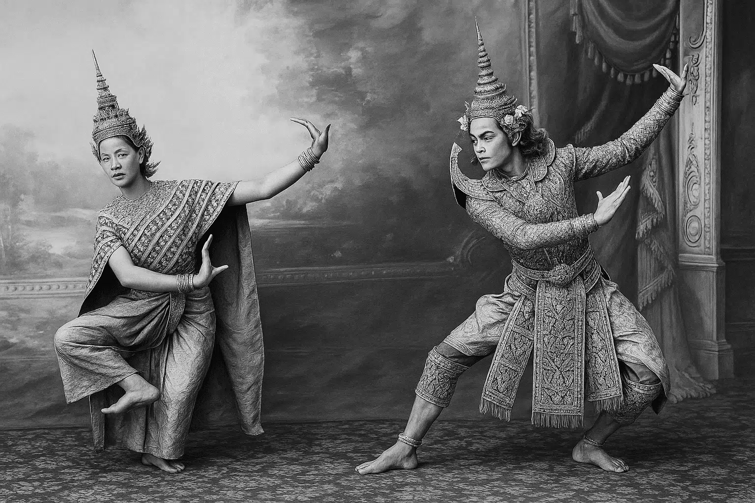 นาฏศิลป์เขมร เช่น ระบำอัปสรา โขนเขมร มีรากฐานร่วมกับนาฏศิลป์ไทยมาตั้งแต่อาณาจักรขอม เช่นเดียวกันในหลวงเขมรรุ่งเรืองล่มสลาย สมเด็จพระเรียมนโรดม บุปผาเทวี พระราชธิดาในสมเด็จพระนโรดมสีหนุ และอดีตนักแสดงระบำหลวงผู้มีชื่อเสียงของกัมพูชา ได้เคยให้สัมภาษณ์ไว้ว่า ศิลปะการแสดงของกัมพูชาเป็น “การผสมผสานอย่างแท้จริง” กล่าวคือ ฝั่งกัมพูชาได้รับความรู้จากครูผู้สอนชาวไทย แล้วนำมาปรับให้เข้ากับวัฒนธรรมของตนเอง