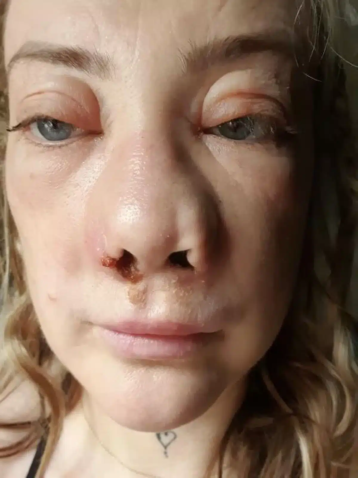 ลีแอนน์บรรยายถึงความเจ็บปวดว่า “ฉันเจ็บปวดที่สุดในชีวิต… มันรู้สึกเหมือนกระจกแตกถูกทุบใส่หน้าและป้ายไปทั่ว ฉันร้องไห้ไม่หยุดเลย ใบหน้าของฉันยุบไปหมดแล้ว… ความเจ็บปวดแย่กว่าการคลอดบุตรเสียอีก”