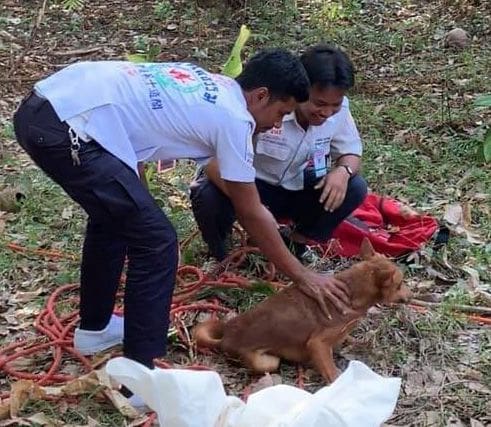 ทั้งนี้หลังจากที่ดึงสุนัขตัวดังกล่าวขึ้นมาจากบ่อ เจ้าหน้าที่ได้แก้บ่วงเชือกที่คอออก ทำให้สุนัขดังกล่าวรีบวิ่งหายกลับเข้าไปในป่าในทันที