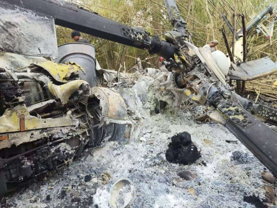 นอกจากนี้ KIA ยังอ้างว่าได้ทำลายเฮลิคอปเตอร์ที่ตกกระแทกพื้นด้วยโดรน โดยโพสต์ภาพเครื่องบินที่ได้รับความเสียหายระเบิดขณะถูกล้อมรอบด้วยรถบรรทุกทหารในสนามฟุตบอล