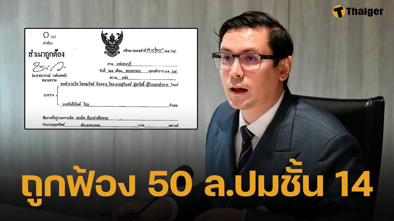 วันที่ 14 มิถุนายน 2568 นายรังสิมันต์ โรม สส.บัญชีรายชื่อ และรองหัวหน้าพรรคประชาชน โพสต์ภาพหมายศาล พร้อมแจ้งข่าวแก่พี่น้องประชาชนให้ได้ทราบว่า ตนเพิ่งถูกอดีตแพทย์ใหญ่ ฟ้องเรียกค่าเสียหาย 50 ล้านบาท หลังจากเจ้าตัวอภิปรายไม่ไว้วางใจ กรณีชั้น 14 โดยข้อความระบุว่า