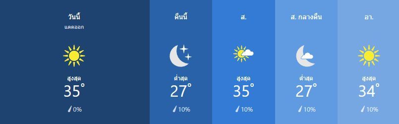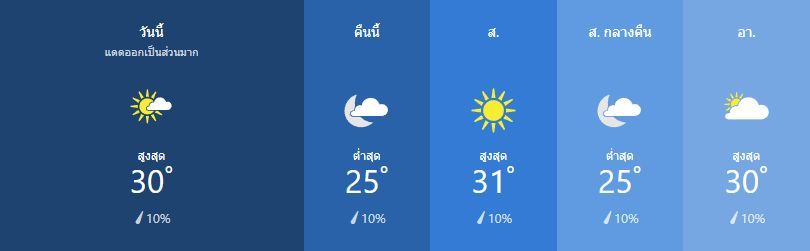 ท้องฟ้าแจ่มใสมาก สูง 36เซลเซียส ความเร็วลม ใต้ ตะวันออกเฉียงใต้ ที่ 10 ถึง 15 กิโลเมตรต่อชั่วโมง